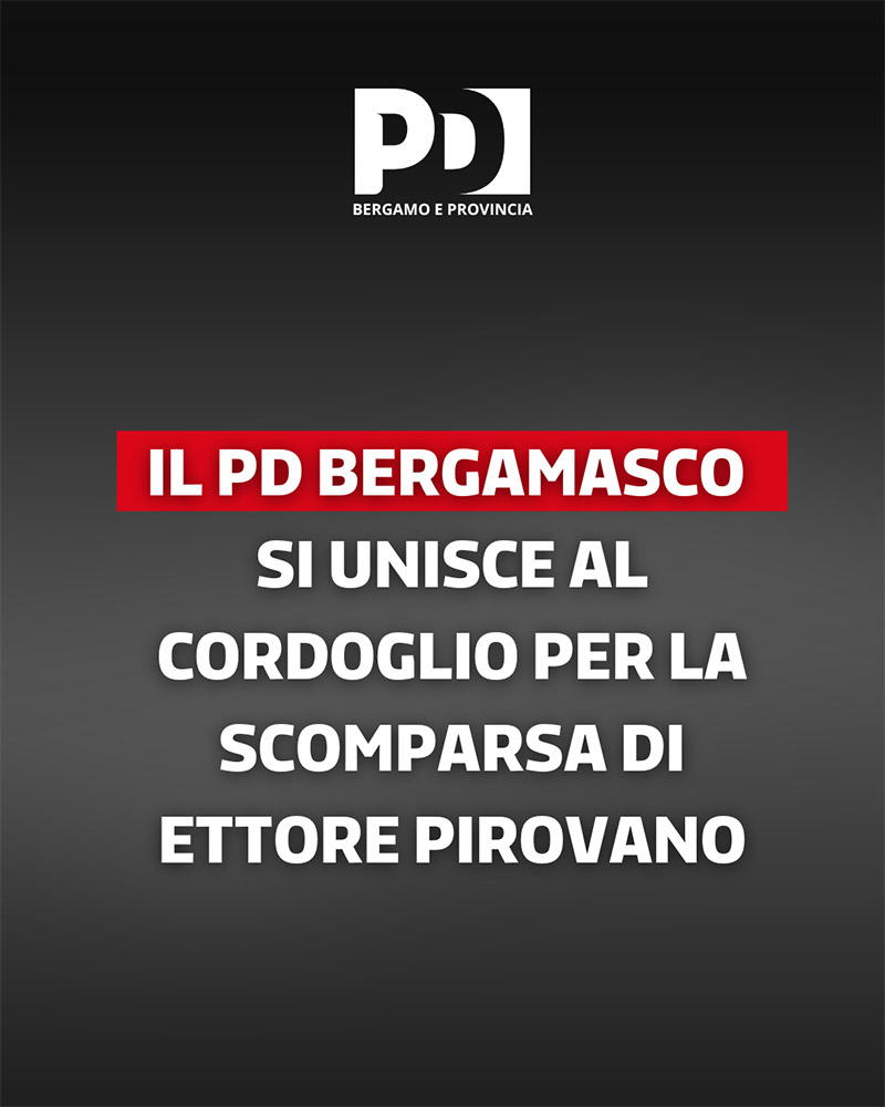 Il Partito Democratico Bergamasco esprime cordoglio e vicinanza alla famiglia di Ettore Pirovano, già parlamentare, presidente della Provincia di Bergamo,…