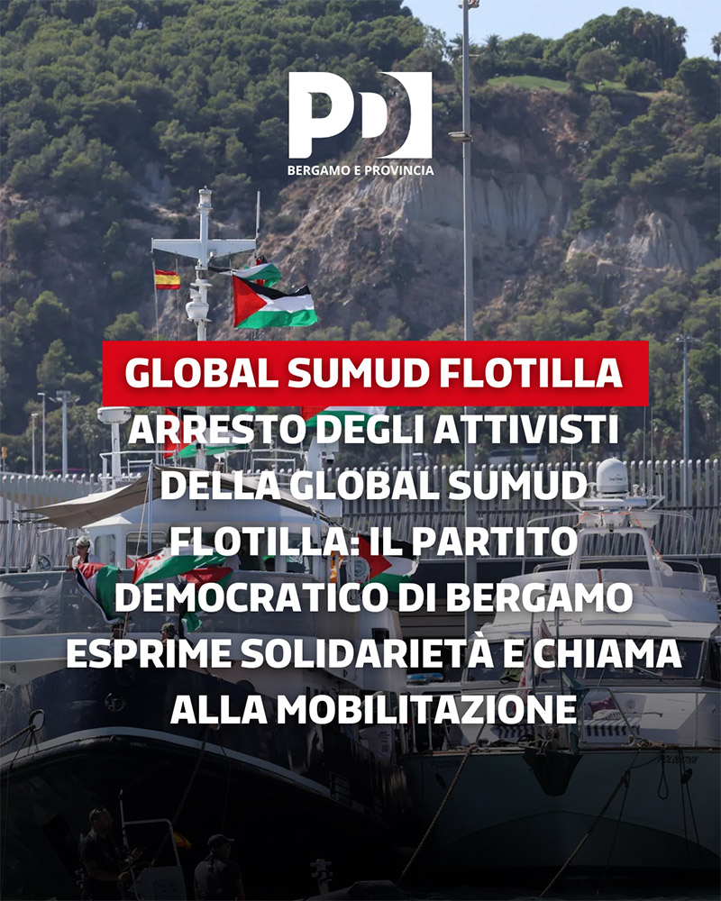 Il Partito Democratico di Bergamo condanna fermamente l’arresto degli attivisti della Global Sumud Flotilla da parte delle Forze di Difesa…