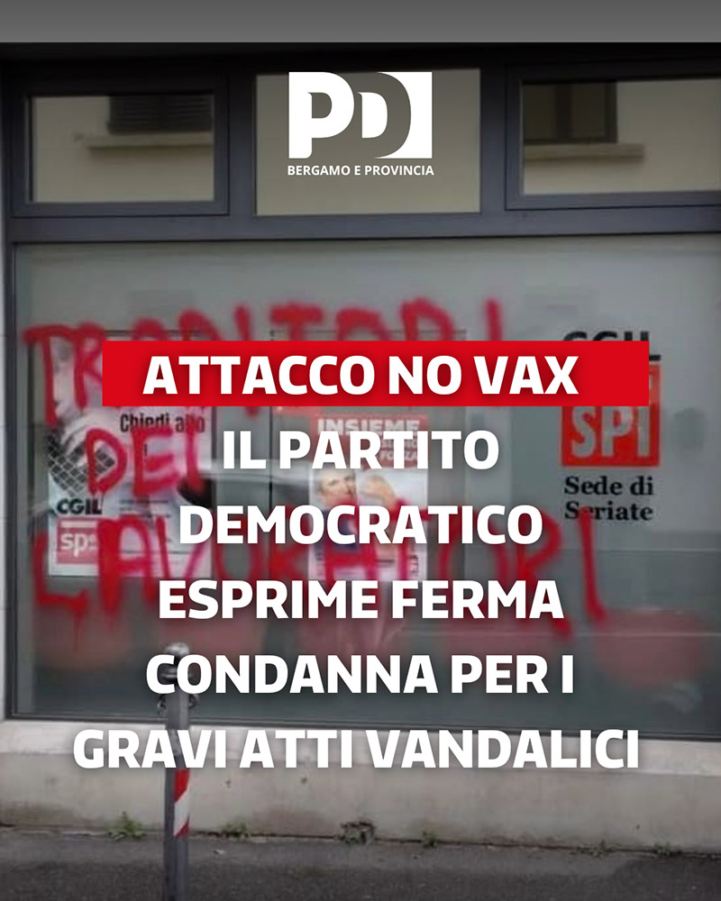 Ferma condanna per gli atti vandalici “no vax” contro la CGIL e l’Ospedale di Seriate