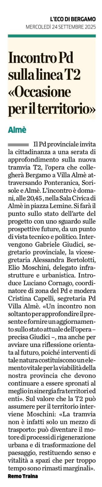 Incontro PD sulla linea T2 “Occasione per il territorio”