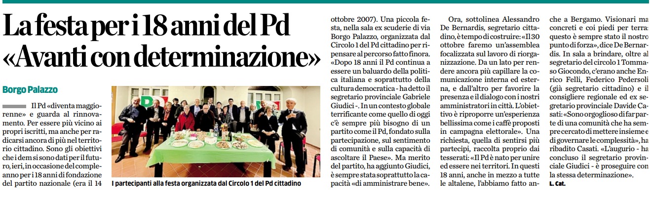 La festa per i 18 anni del PD: Avanti con determinazione