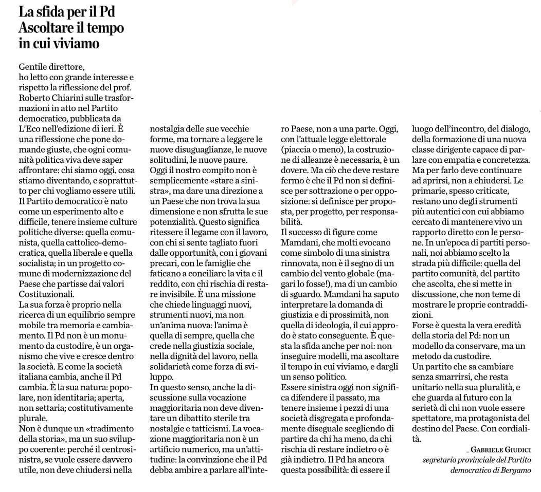 La sfida per il pd: Ascoltare il tempo in cui viviamo