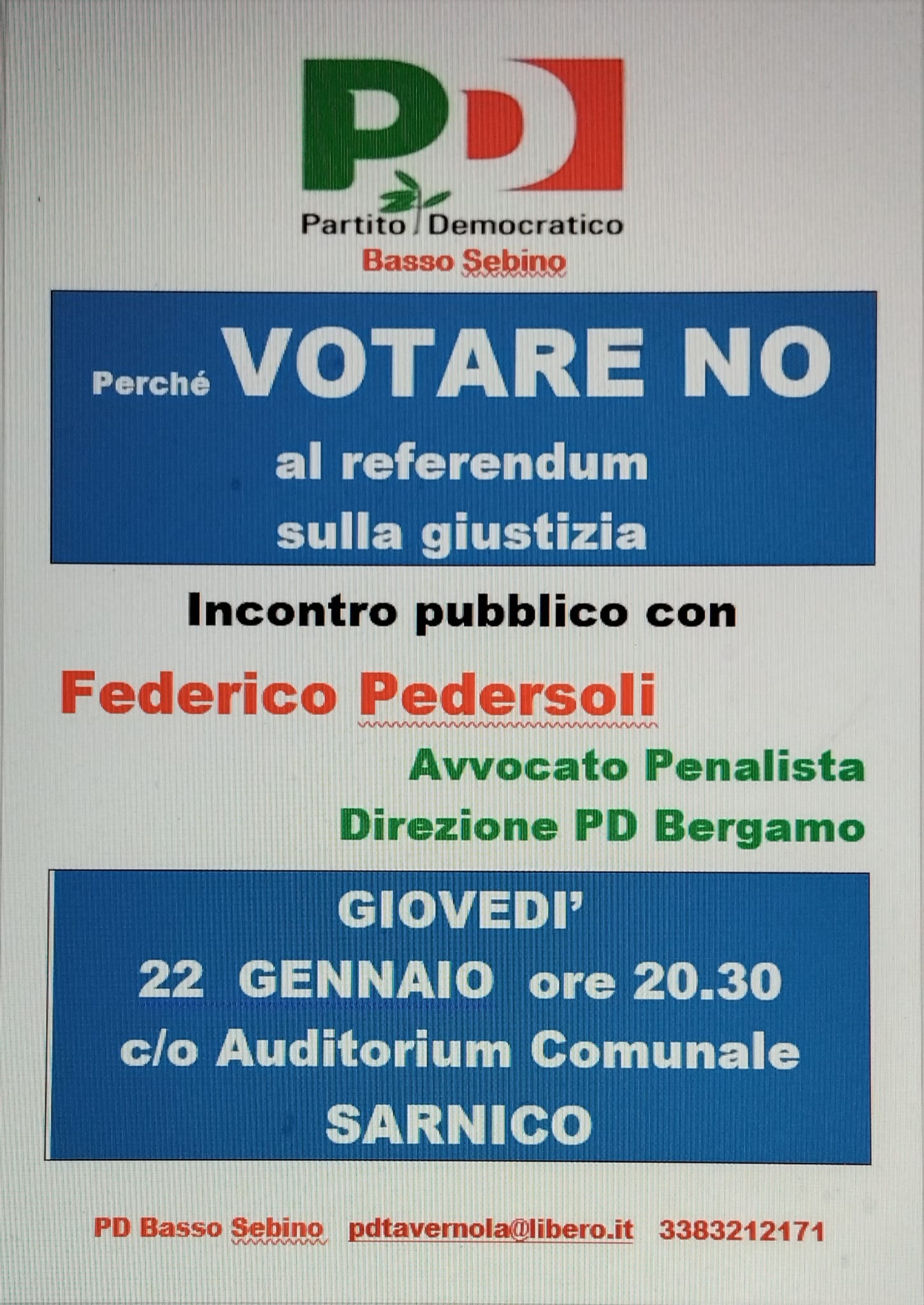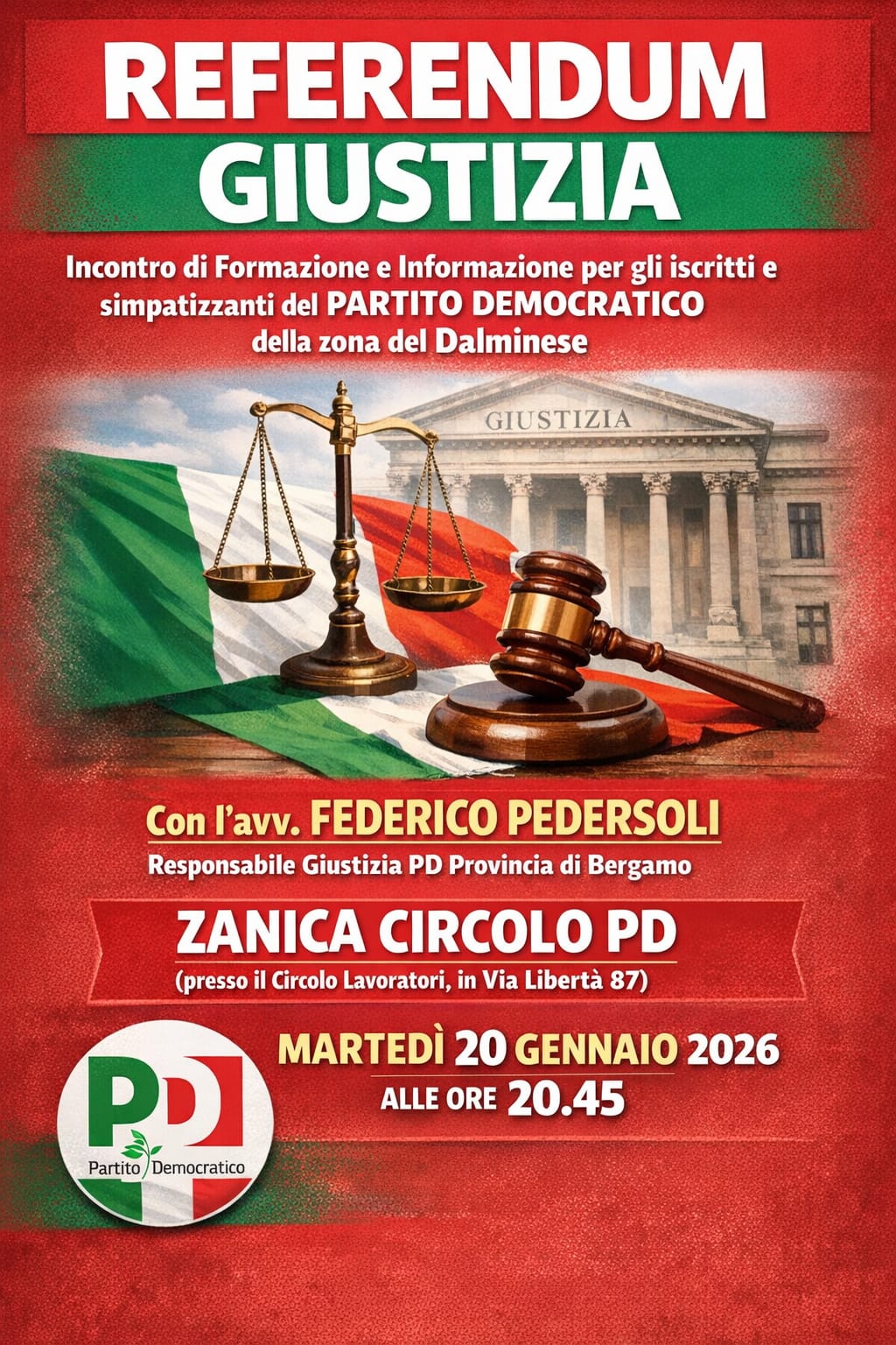 Il Partito Democratico di Bergamo promuove un incontro pubblico di approfondimento e confronto in vista del Referendum sulla Giustizia 2026,…
