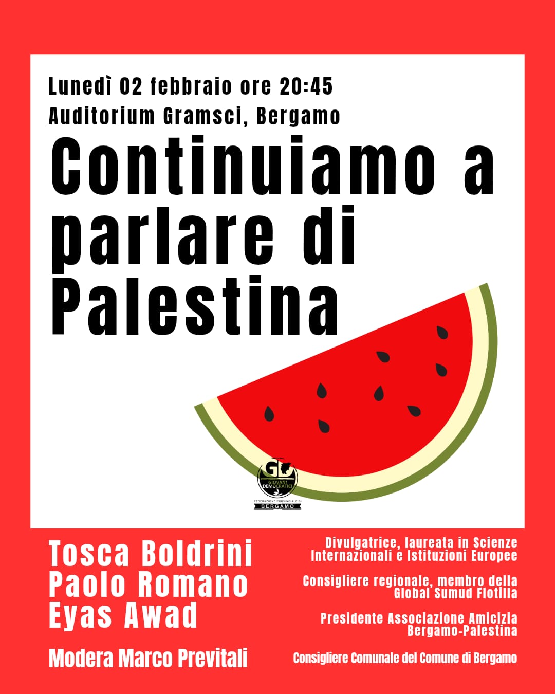 Palestina, quale pace? Data: 29 gennaio 2026 Tema: Storia e attualità dopo gli accordi di Sharm El-Sheikh Luogo: Sala Galmozzi, Via Tasso 4…
